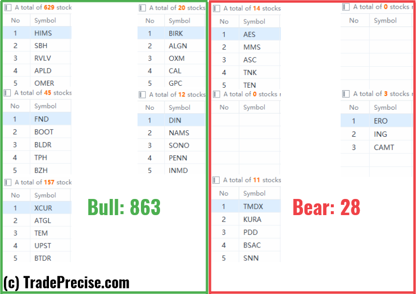 The bullish vs. bearish setup is 863 to 28 from the screenshot of my stock screener below.