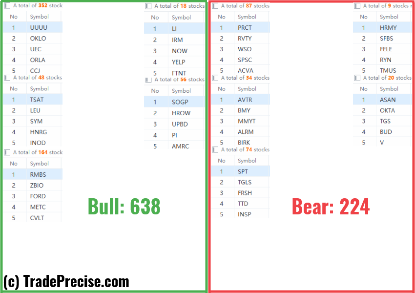 The bullish vs. bearish setup is 638 to 224 from the screenshot of my stock screener below.